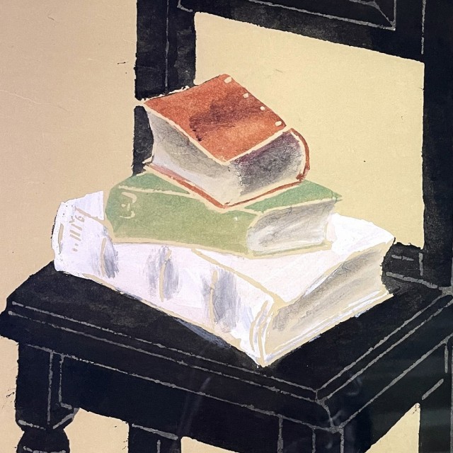 Keisuke Serizawa was also a well-known collector, and the Keisuke Serizawa Museum of Art in Shizuoka houses 4,500 pieces of artifacts from around the world. Among furniture, Serizawa's favorite was apparently chairs. He collected many chairs, mainly from Europe and Africa, and kept them around him, constantly replacing them. The chair depicted in this work may be one of his favorite chairs.