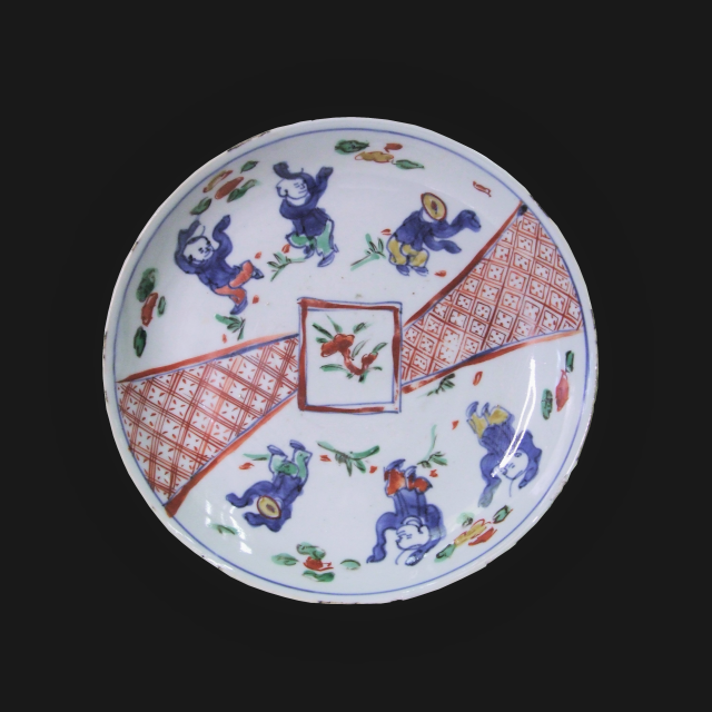 【SOLD】"Pair of Dishes with Blue and White, Overglaze Enamel"