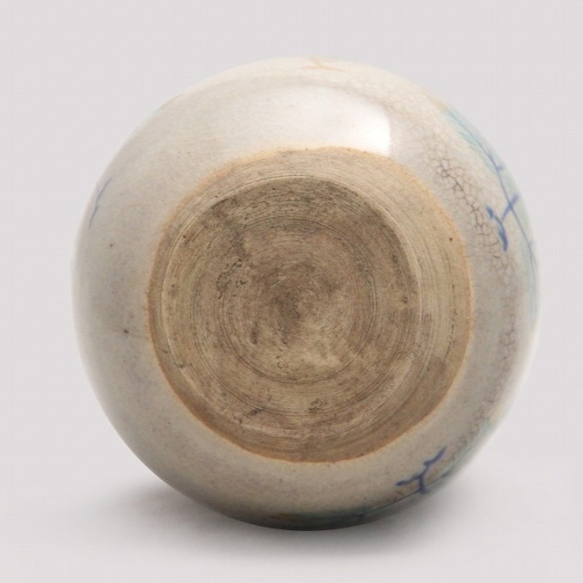 The surface shows overall craquelure, along with some stains and soiling on the glaze, which impart a distinctive patina characteristic of aged ceramics.