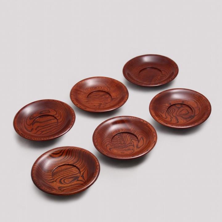 黒田 辰秋 「拭漆欅茶托 6客組」