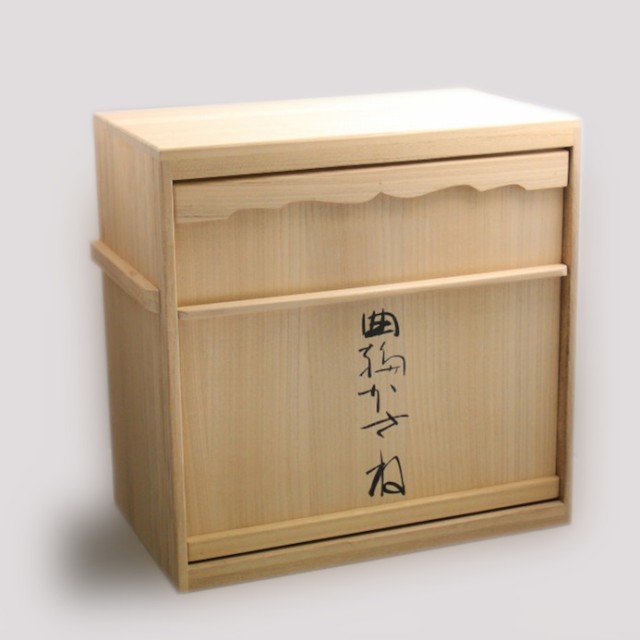 桐箱に収められており、箱の蓋の表には「曲輪かさね」、裏側には「偉三郎」の署名と印があります。