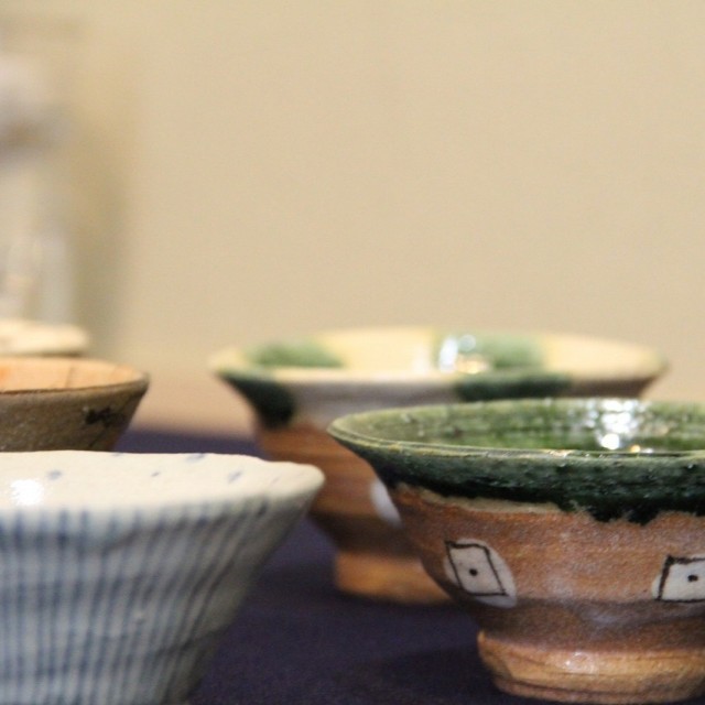 鈴木五郎による飯茶碗10客。ひとつひとつが異なる表情を持ち、織部・染付・黄瀬戸など多彩な技法で仕上げられています。日常で使いやすい大きさでありながら、食卓に豊かな彩りを添えてくれる器です。