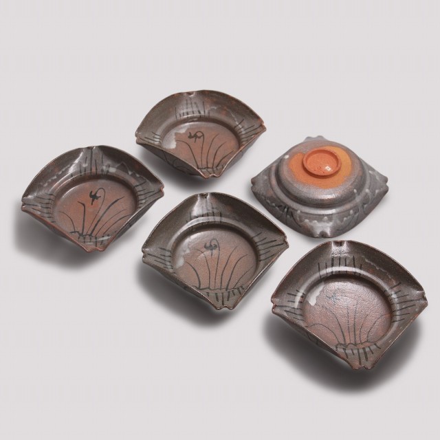 唐津焼を代表する陶芸家・中里重利による、絵唐津の向付五客組です。