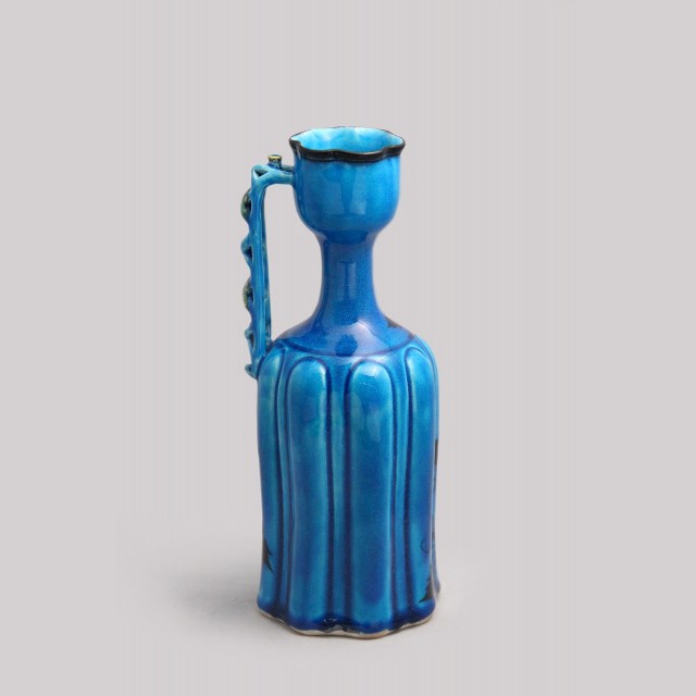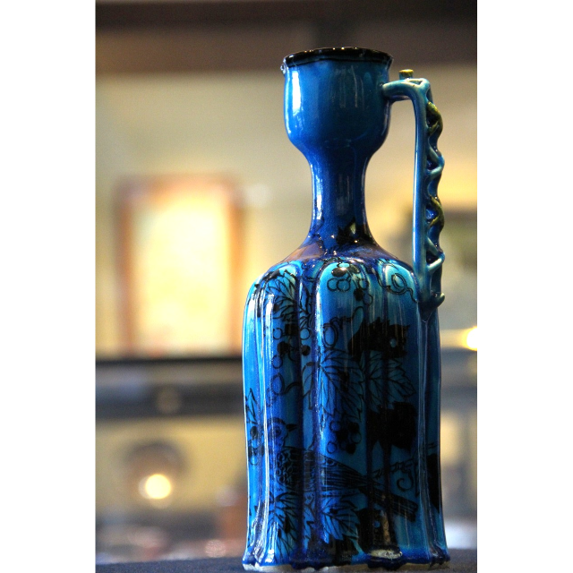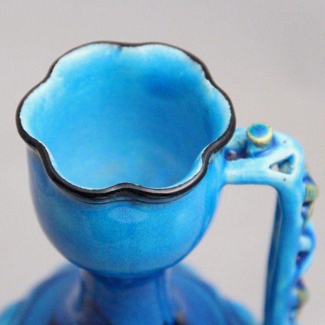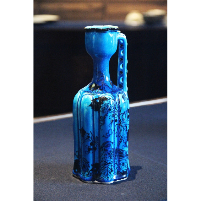 ▲取っ手部分には、青釉の上から金彩が施されています。