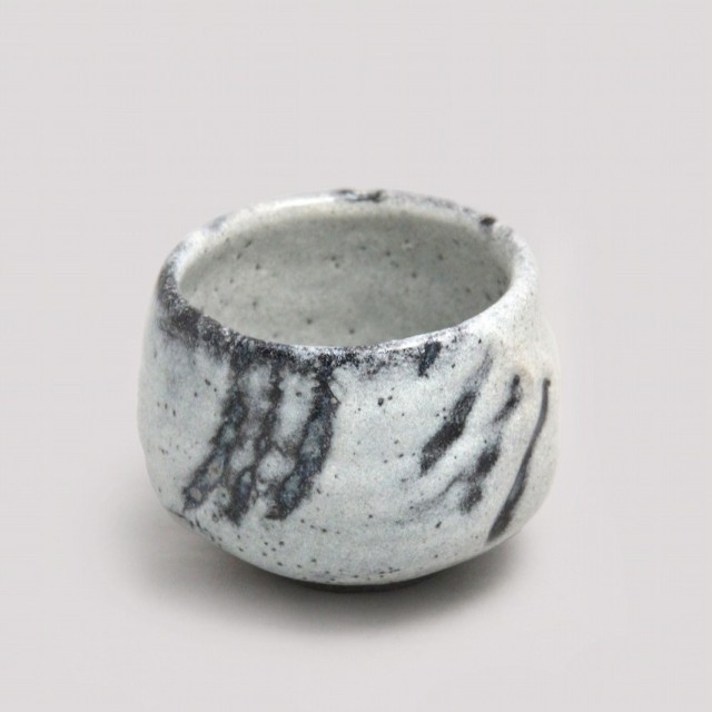 柔らかく包み込むような丸みを帯びた姿に、白釉を基調とした肌合いです。黒褐色の鉄耀が自然な濃淡と動きを見せ、静けさの中に力強さを感じさせる作行きです。