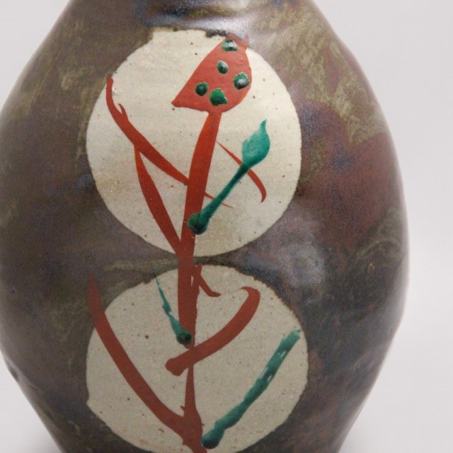 濱田 庄司 「鉄砂赤絵丸紋花瓶」