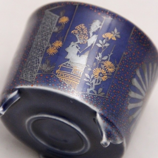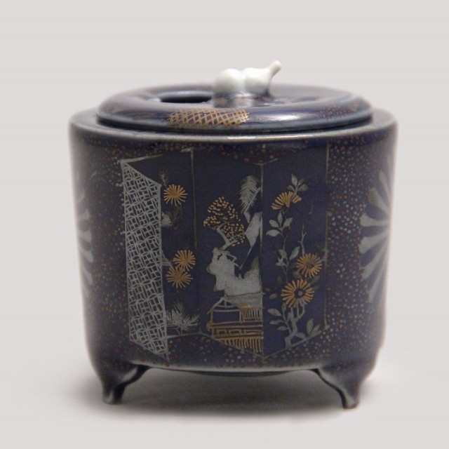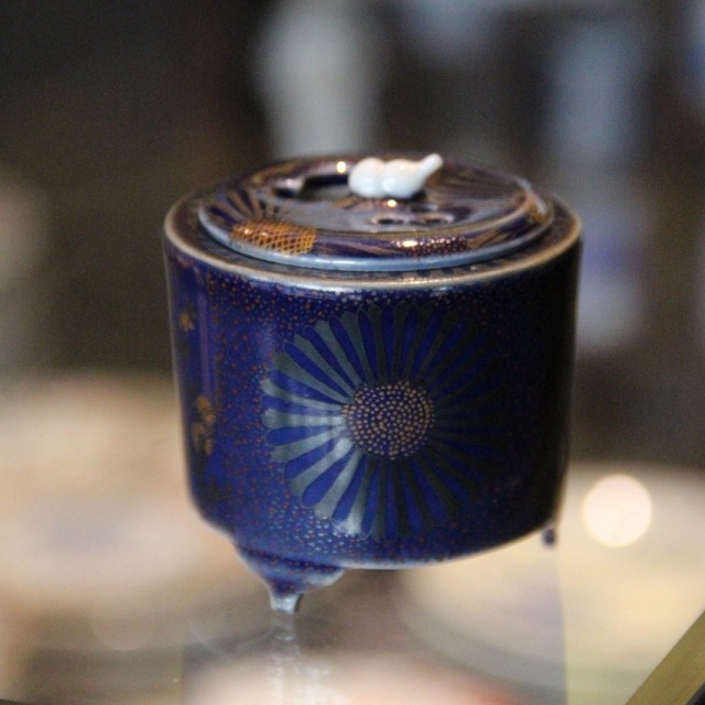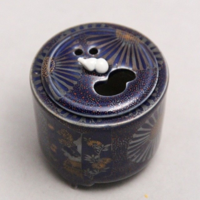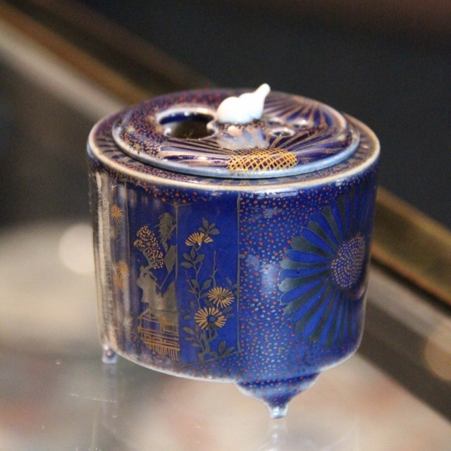 深みのある美しい瑠璃釉に、贅沢な金彩が映える古伊万里の香炉です。