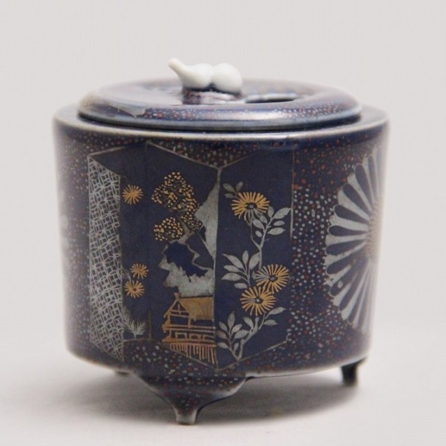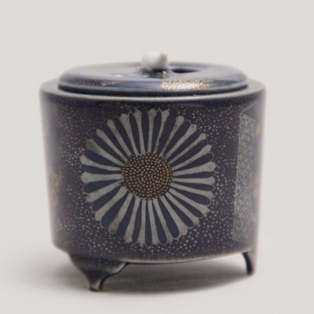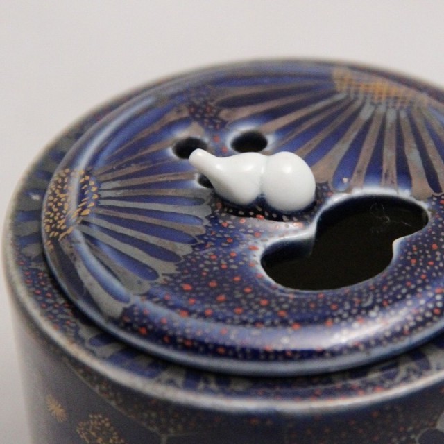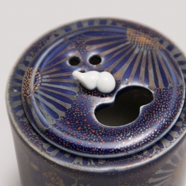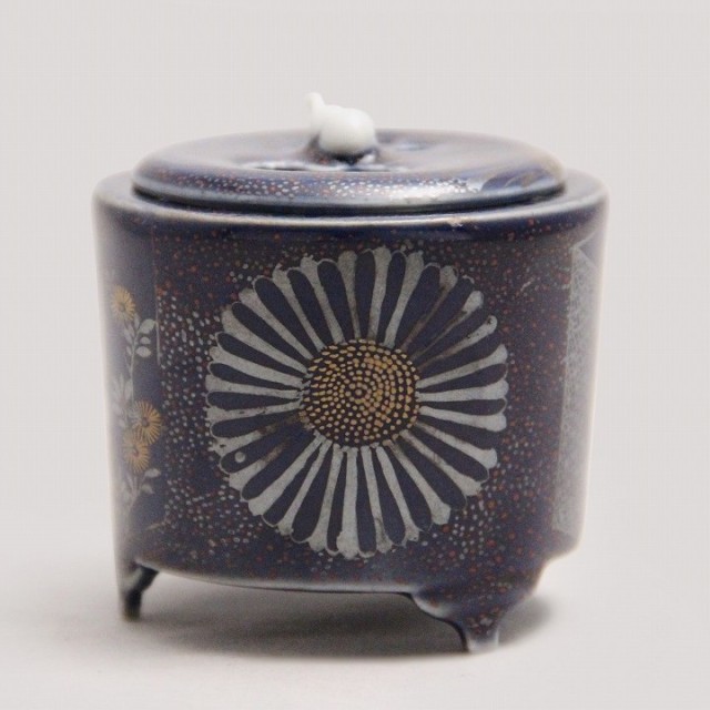 「古伊万里 瑠璃釉金彩菊文香炉」