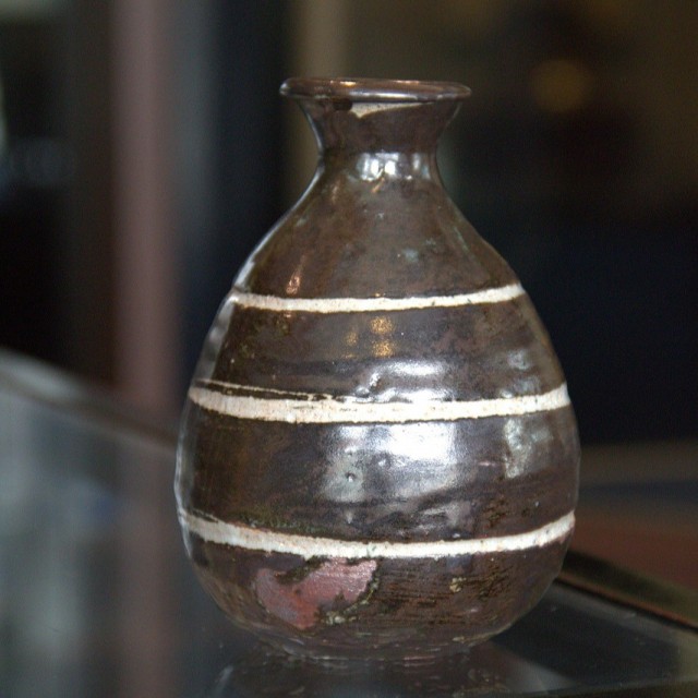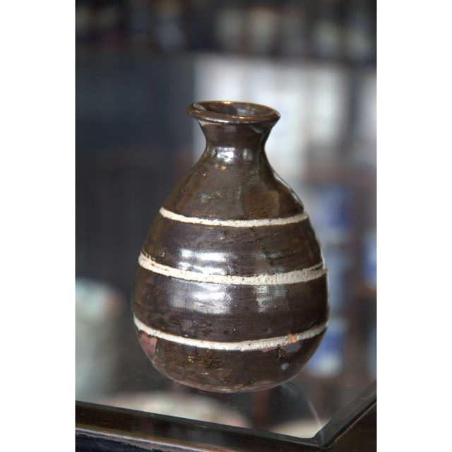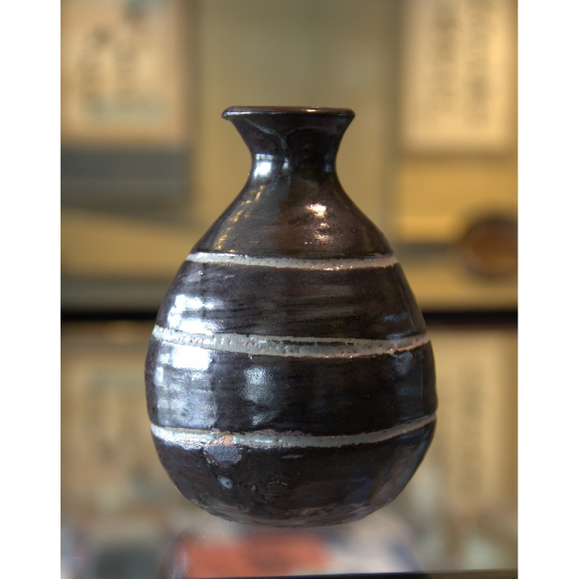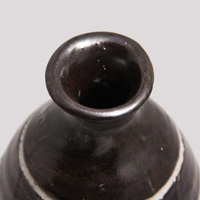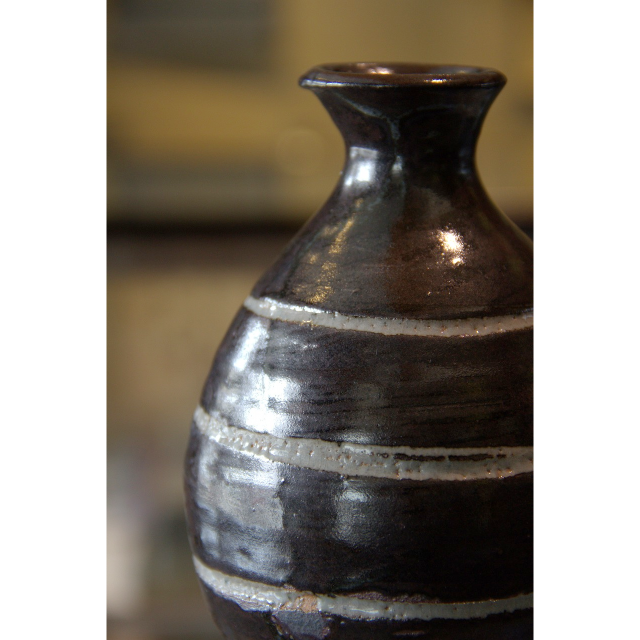 ▲徳利の中央部分に縦に薄っすらと白い筋があります。これは釉薬の色になります。